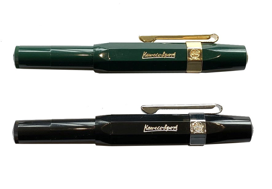 Slide-on clip for Kaweco Sport (also fits Kalligrafie and Sketch Up models). Straight lines with a subtle stamped logo.
