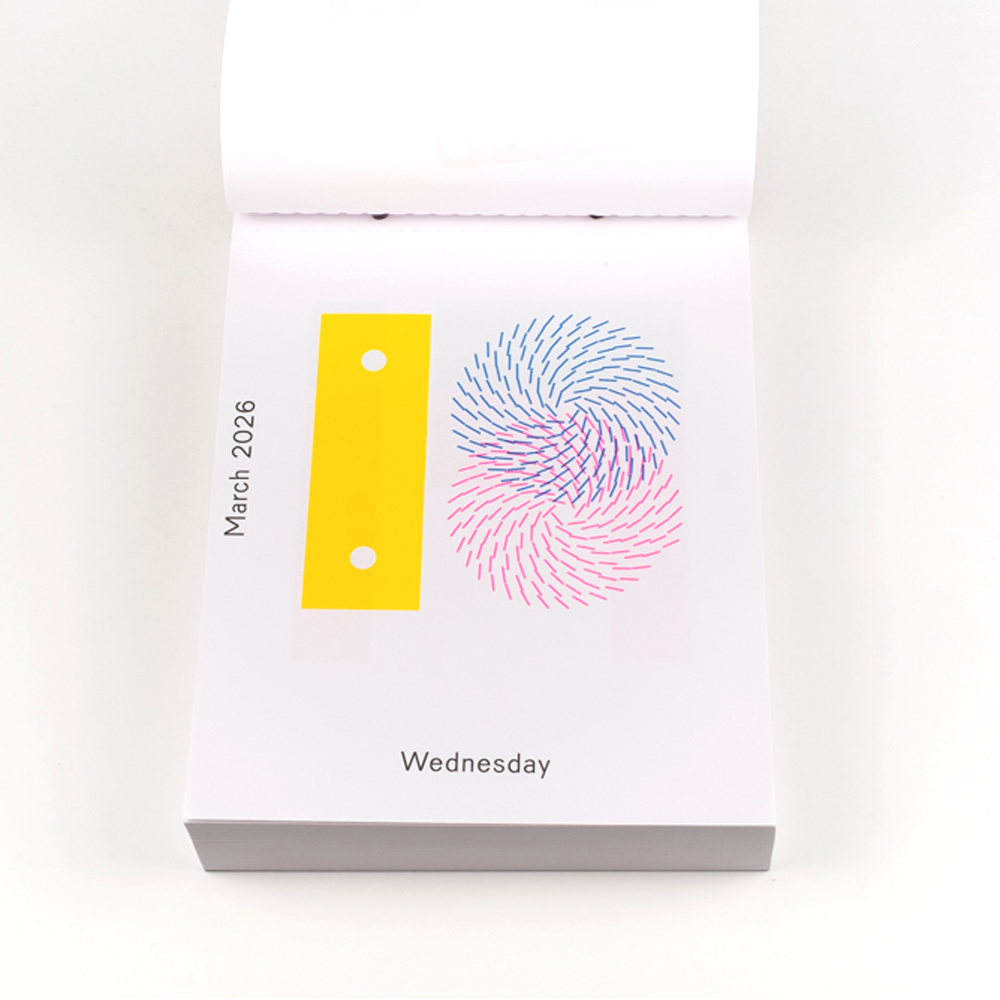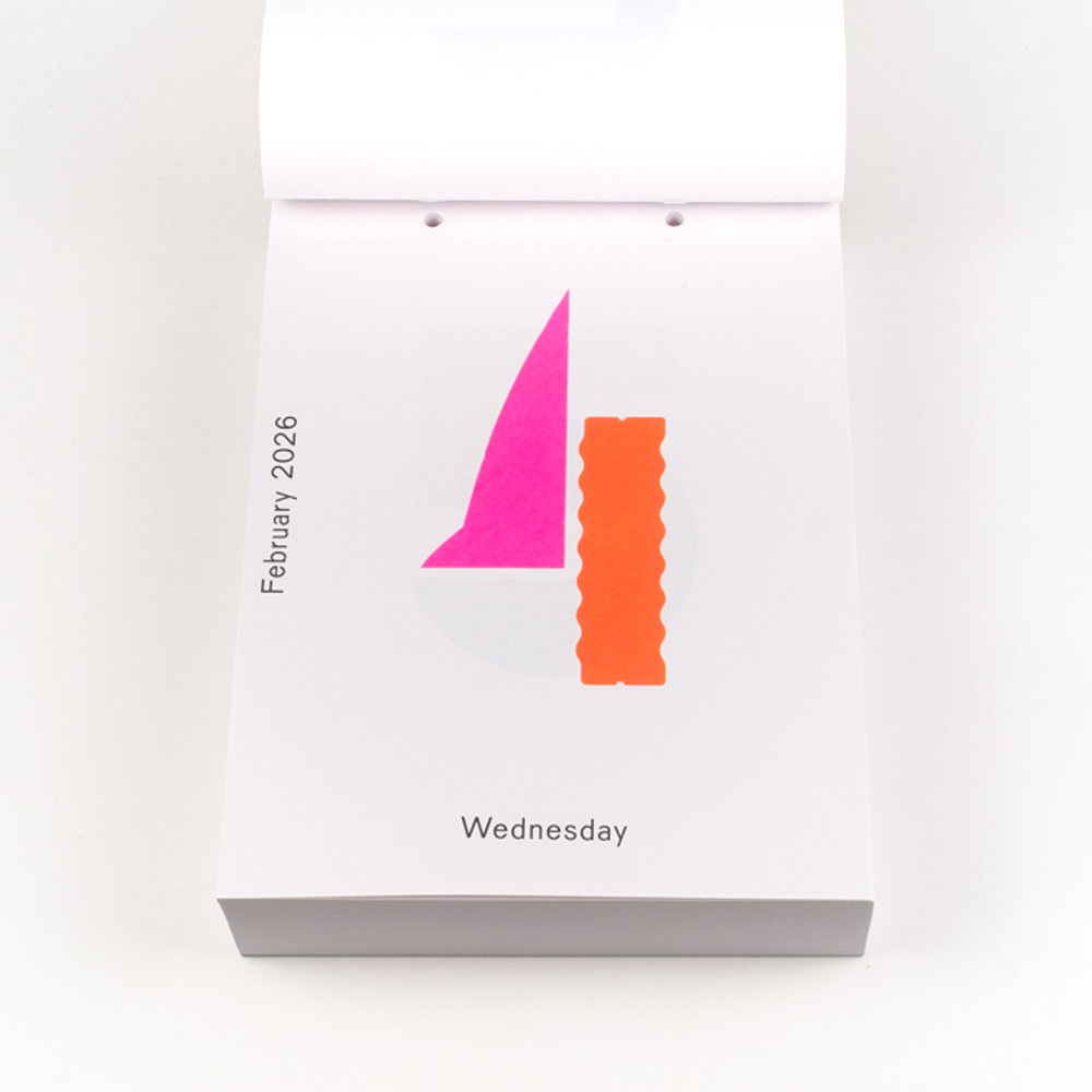 Add a colorful graphic element to each day of 2026 with this tear-off calendar by Dutch graphic designer Karel Martens. For each day of the year, Martens has created a unique arrangement, originally constructed using his signature method of printing letterpress monoprints from found metal forms and then digitized to comprise 365 compositions in total. Every day is a new day!