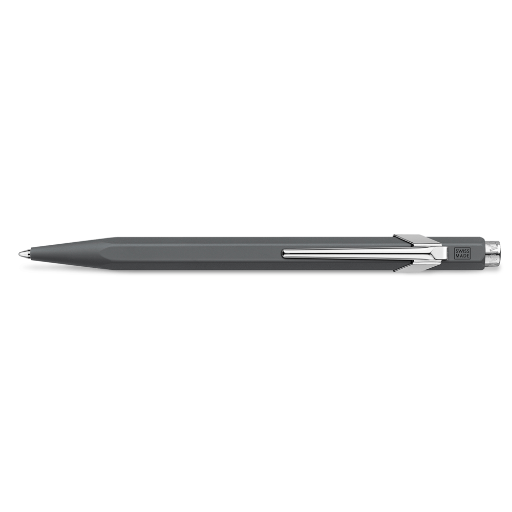 The Swiss-made 849 ballpoint pen has been a classic since 1969. The comfortable hexagonal shape of the powder-coated aluminum barrel and smooth flow of the Goliath ink cartridge makes for a great everyday writing experience. The soft push button action makes it easy to retract and a flexible clip keeps it securely in place.