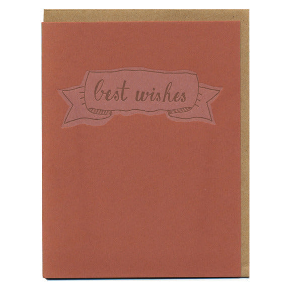 Measures 4.25" wide x 5.5" tall, letterpress printed with brown and mauve inks on brick red cardstock. Comes with a brown kraft envelope. Due to the nature of letterpress printing, slight variations in color & registration might occur.