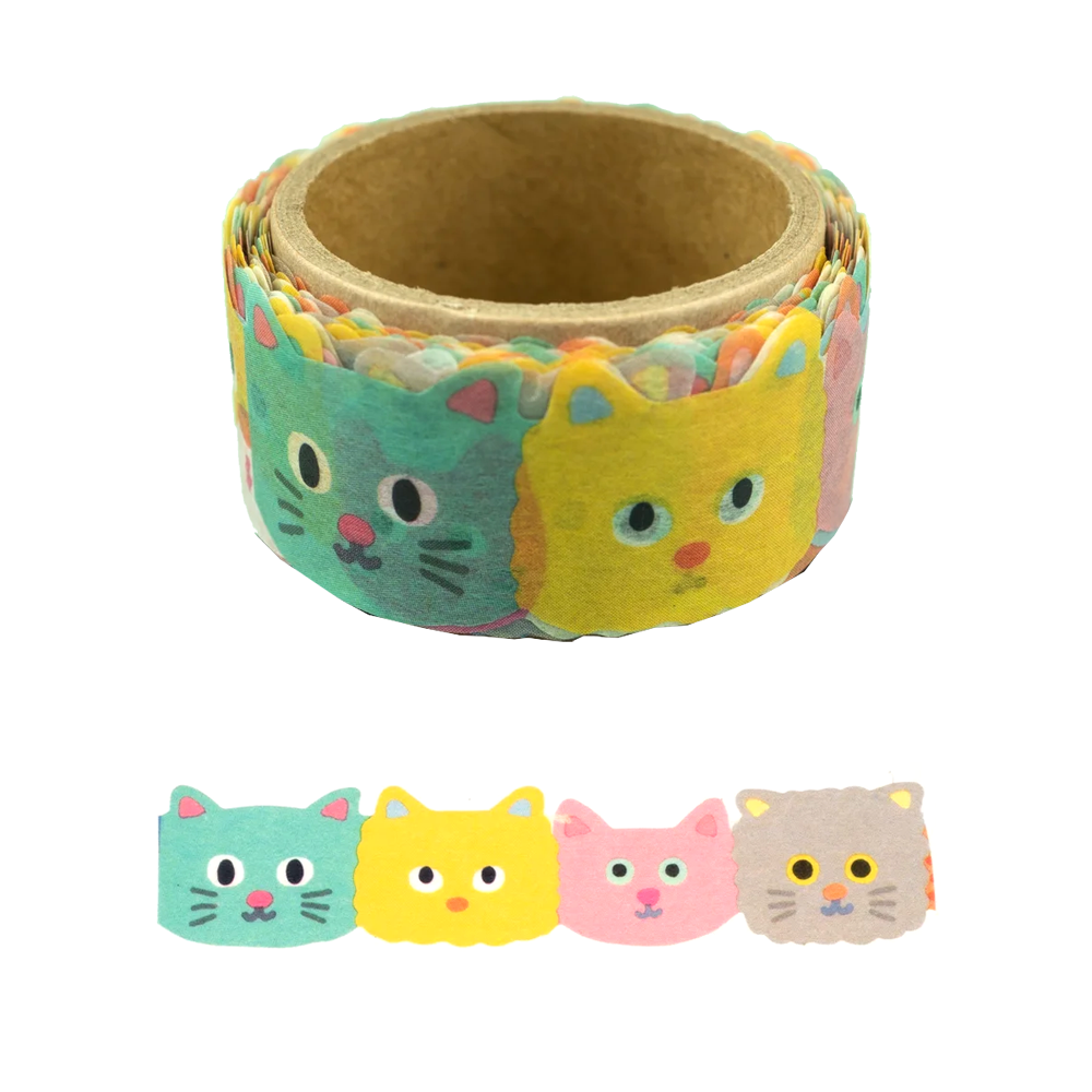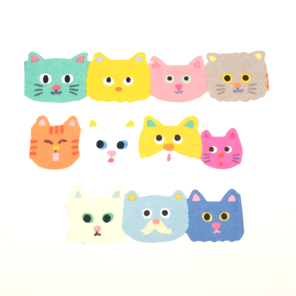 Decorate with this fun die-cut Japanese masking tape. The pattern designed by Tomoko is of a continuous string of colorful cat faces.