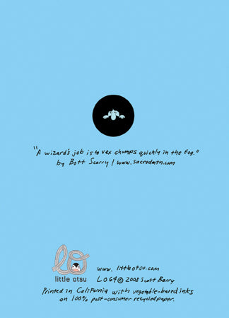 Expand your universe with this mind-bending card from San Francisco artist Scott Barry (or Bott Scarry). “A Wizard’s Job Is To Vex Chumps Quickly In The Fog” will boggle and amaze with its hand-drawn intricacies—when you take it all in, you’ll know what it feels like to step through that door. Cosmic…