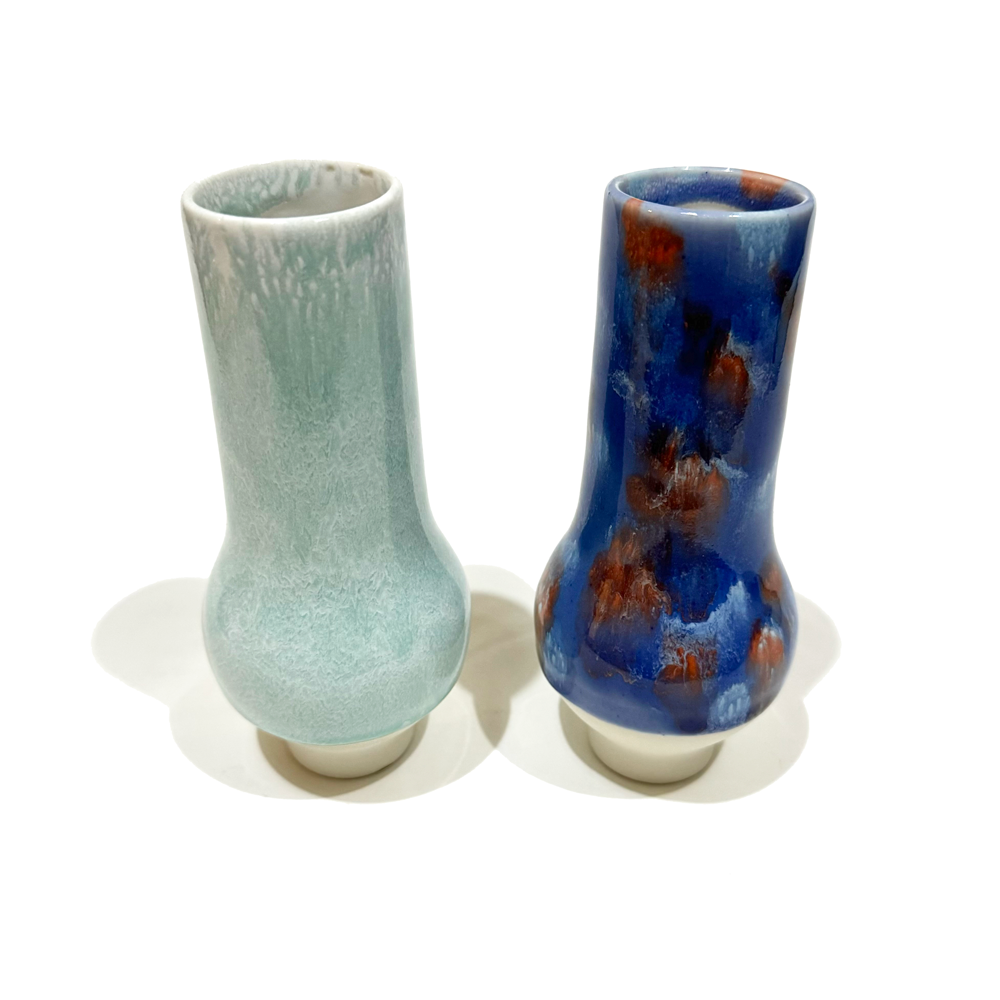 Copenhagen's Studio Arhoj hand-cast and glaze these petite porcelain vases that are watertight and meant for holding a small bouquet (or a few art supplies), but with their lovely glazes they can even just be appreciated as a work of art.