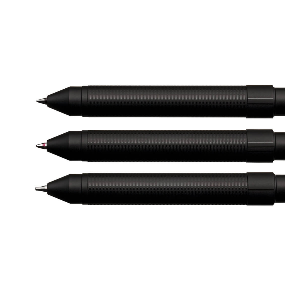 Enjoy this handsome multi-functional pen with easy twist action from Craft Design Technology in Japan. Their custom branded version of the Zebra Sharbo multi-pen allows quick access to a 0.5mm mechanical pencil or black or red emulsion ink ballpoint in a matte metal casing that is lightly textured with a finely printed traditional Japanese motif. Has an attached spring-loaded clip for keeping it secure.