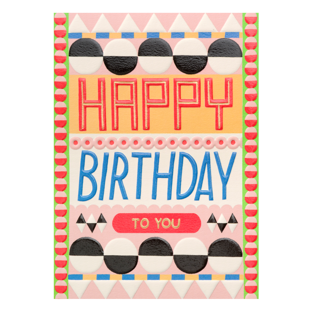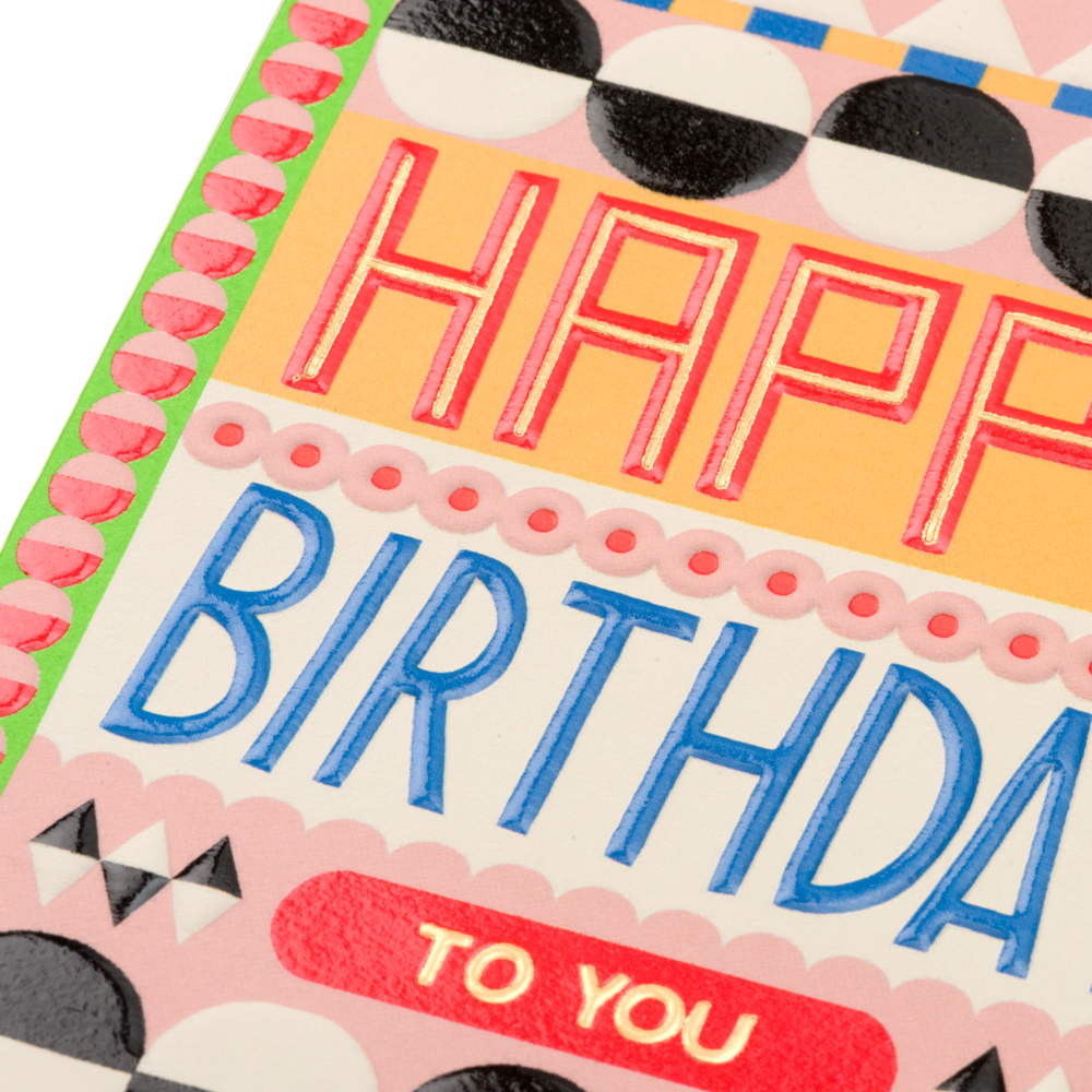 Celebrate a birthday with this festive card by illustrator Ruby Taylor. Embossed shapes and glossy printing give the card extra dimension!