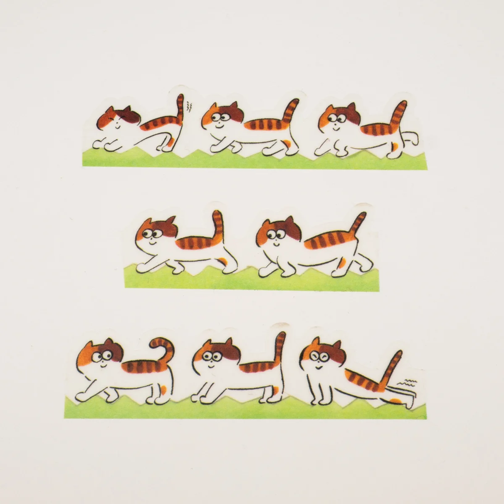 Decorate with this fun die-cut Japanese masking tape. The pattern designed by Akiyo is of a sweet cat out on a walk with a pause for a cute back extension.