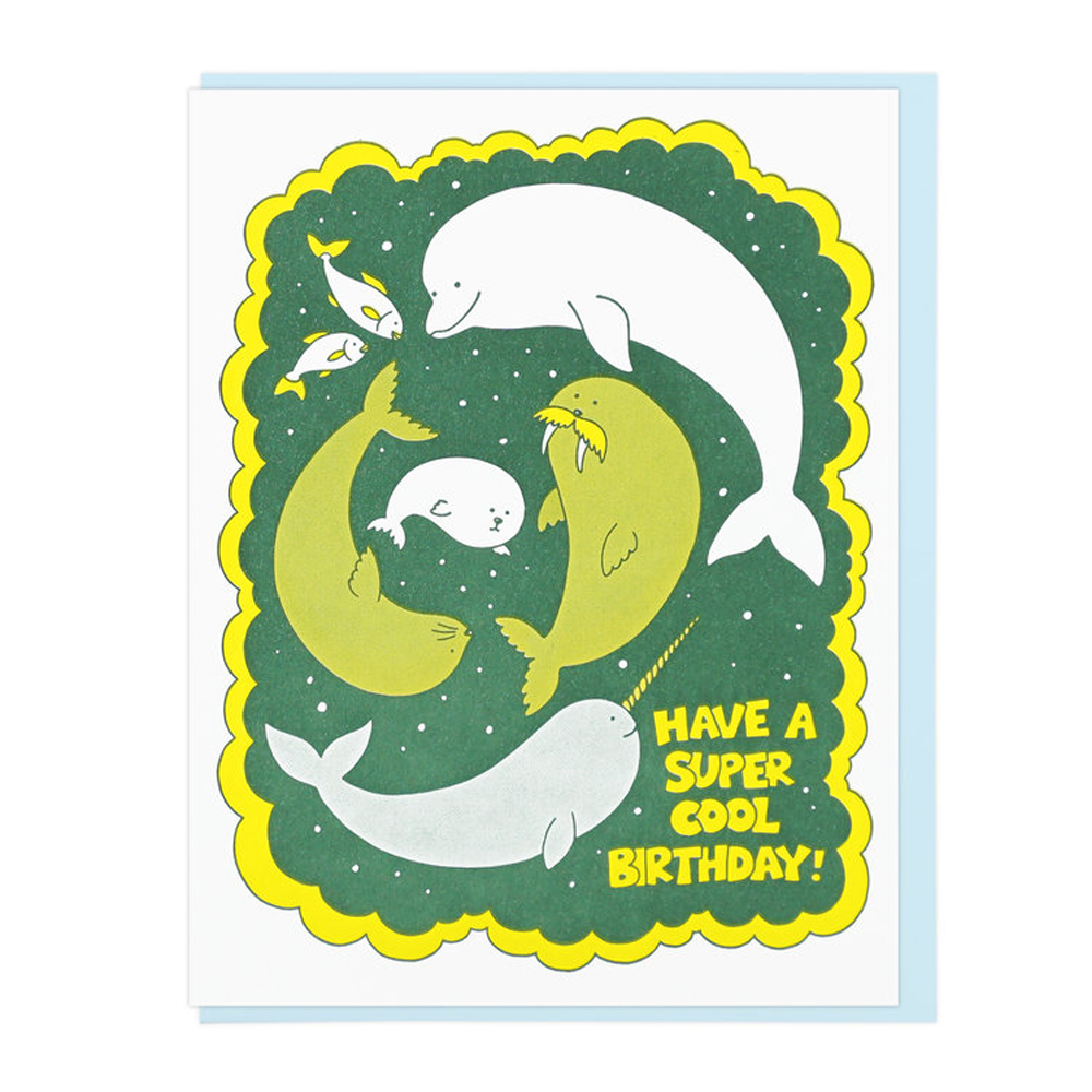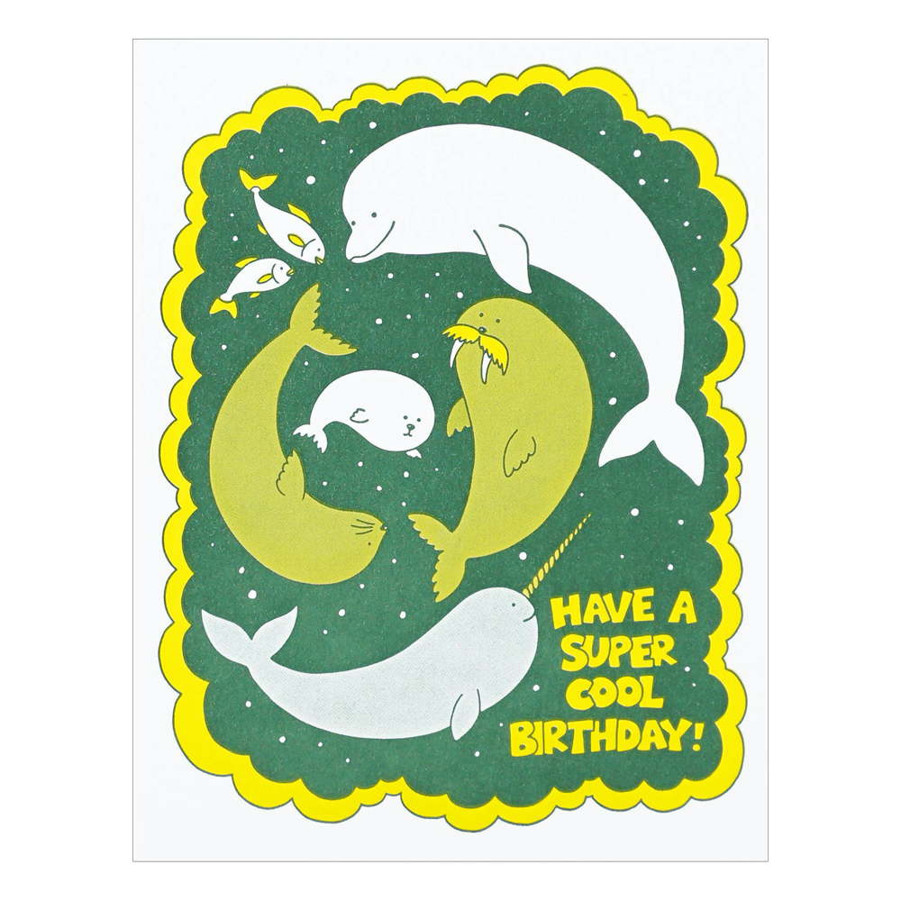 Nothing's cooler than a narwhal (and marine pals) so wish someone the best birthday with this letterpress printed card by New Jersey artist Michele Lee.