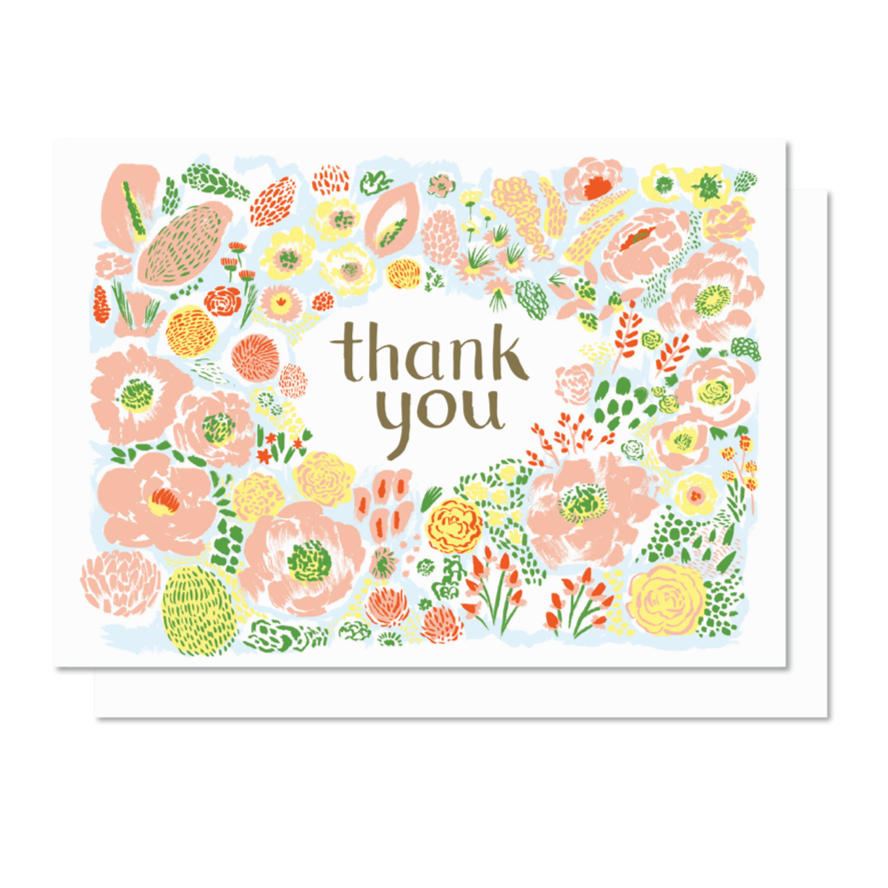 Send an abundance of flowers to go with your many thanks in this lovely card from Montréal illustrated by Gabrielle Lamontagne. The "thank you" is printed in gold foil.